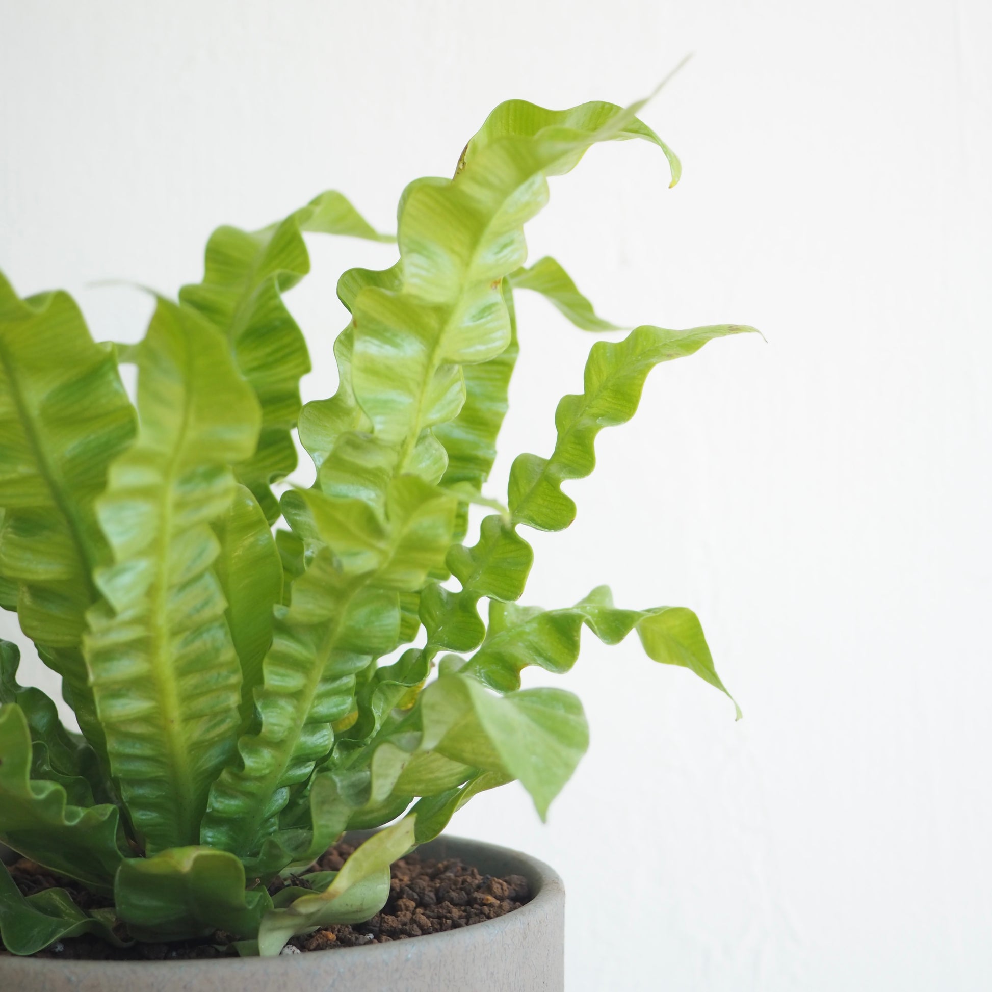 シダ植物ならではの繊細さと、モダンなフォルムを併せ持ち、和洋問わずさまざまなインテリアと美しく調和します。
