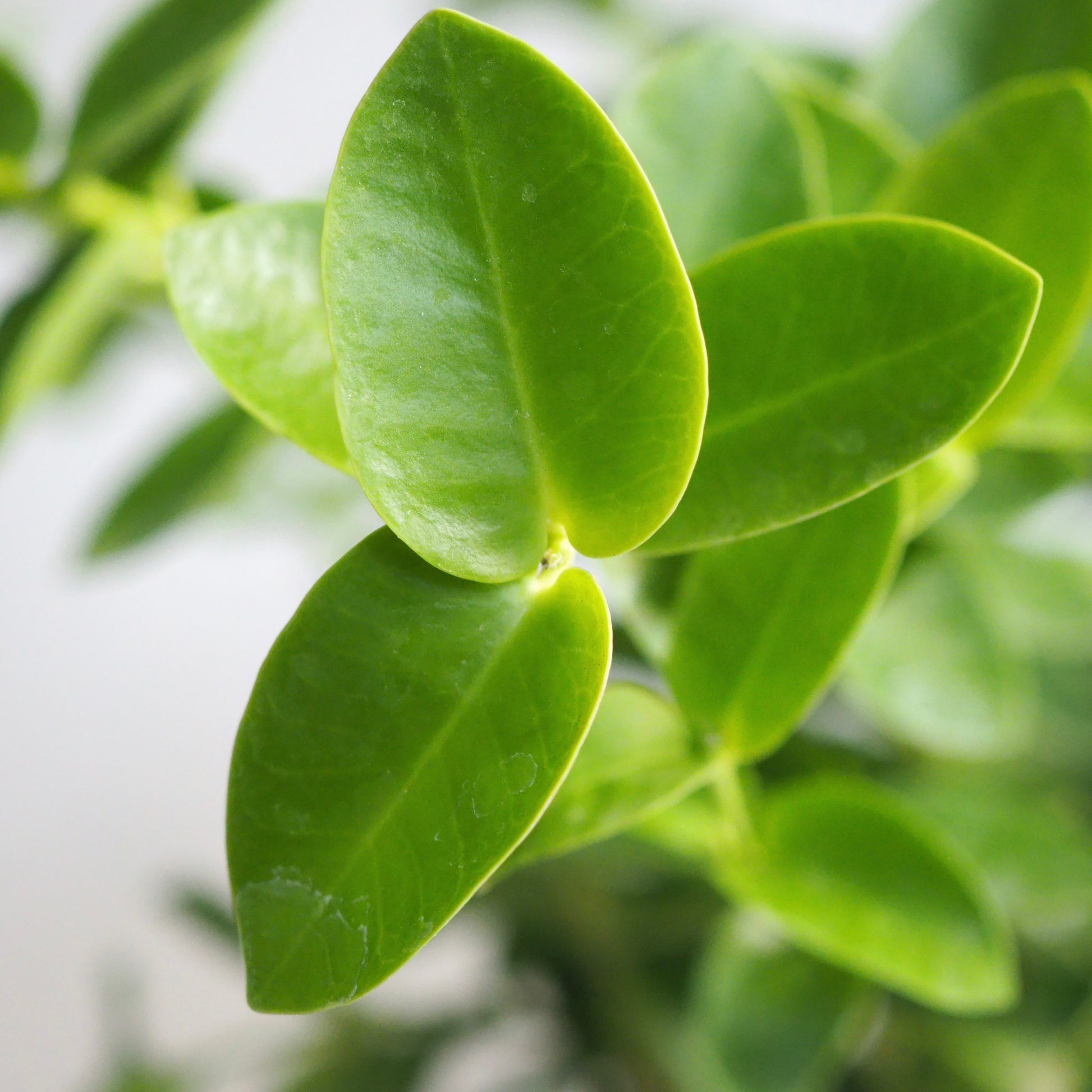 肉厚でつやのある小さな葉を連ねながら、しなやかに垂れ下がるホヤ・クミンギアナ。