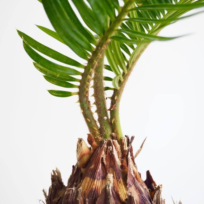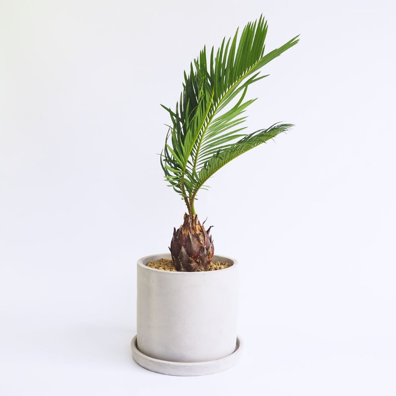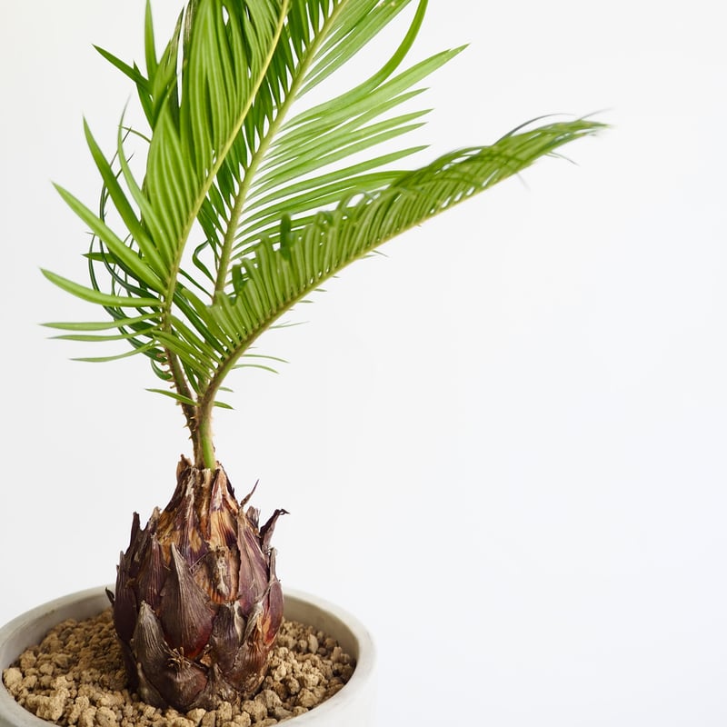 放射状に広がる硬質な葉が、存在感を放つシカス・レヴォルタ。古代植物の風格と、力強さを併せ持つ美しい植物です。