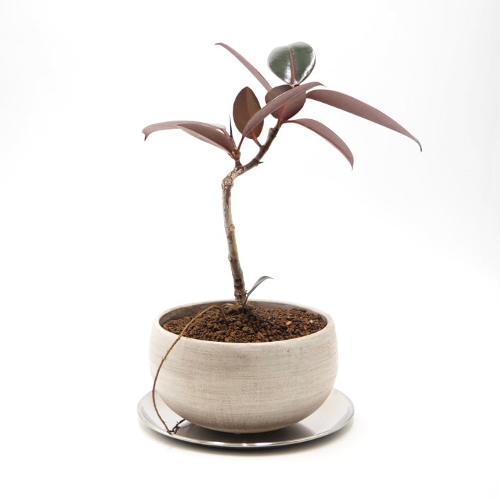 光の角度によって、葉の艶が浮かび上がり、その表情は日々変化する。*個体によって形や色に差があります。シンプルなお部屋にも映え、置くだけでぐっと深みを与えてくれます。
